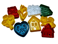 Plastová vykrajovátka, formičky a zápichy vyrábíme z PLA - což je biologicky odbouratelný plast (základem je kukuřice a cukrová třtina, je odolný do cca 50-60°C), vyhovuje parametrům pro materiály určené ke styku s potravinami. Samotný výrobek certifikát nemá.