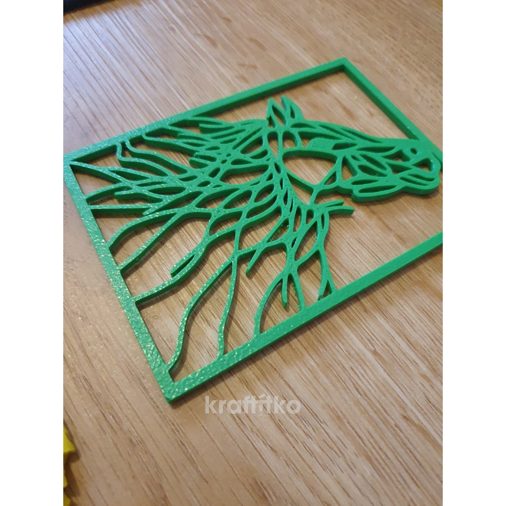 Obtisk - destička s motive koňské hlavy s vlající hřívou.