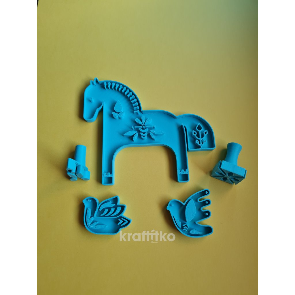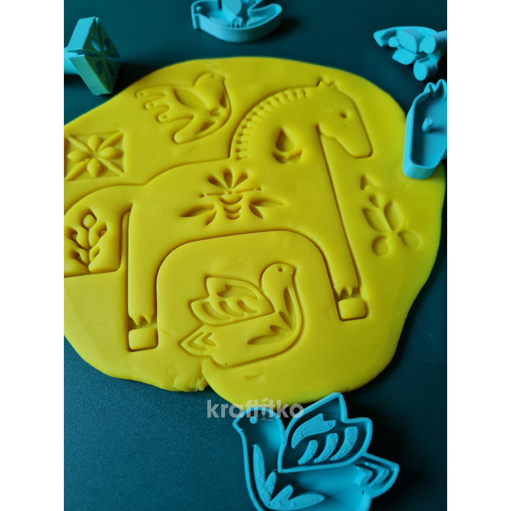 Naše otisky jsou skvělým pomocníkem při práci s keramikou, polymerovou hmotou, plastelínou, moduritem a dalšími modelovacími materiály. Jsou ale také ideální pro tvoření na papír nebo textil – stačí je namočit do barvy nebo přetřít barvou a můžete otiskovat originální motivy na látky či papír.