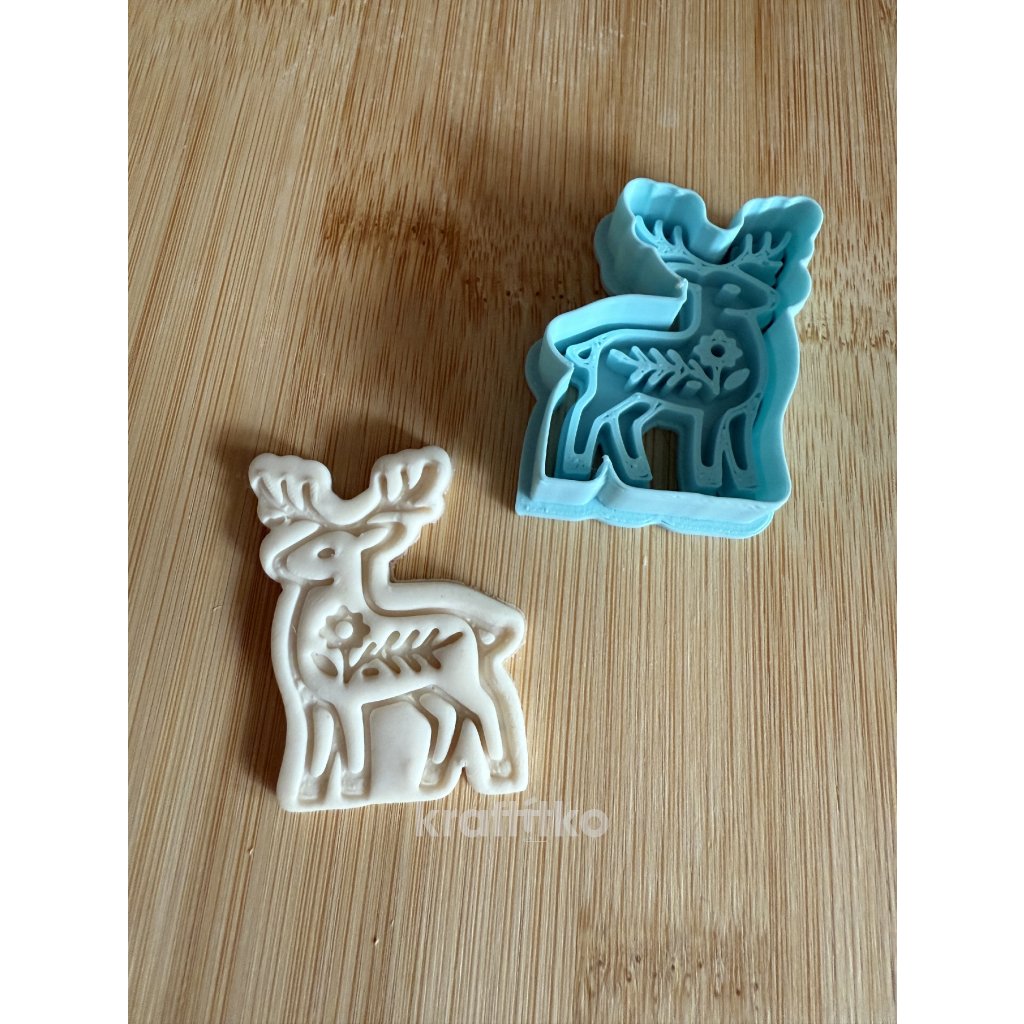 Folklorní jelen vykrajovátko 2v1 - vnější obrysové vykrajovátko a vnitřní otisk