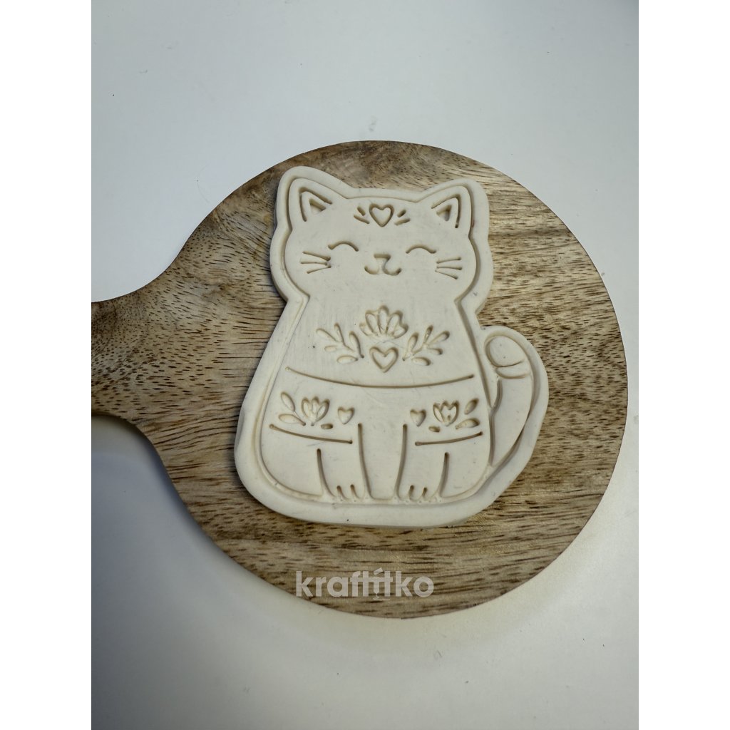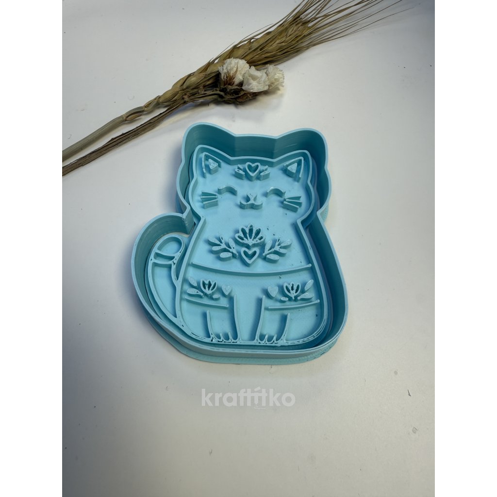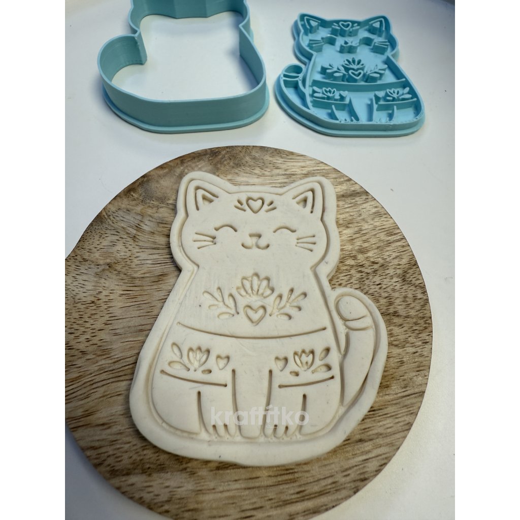 Folklorní kočička vykrajovátko 2v1 - vnější obrysové vykrajovátko a vnitřní otisk