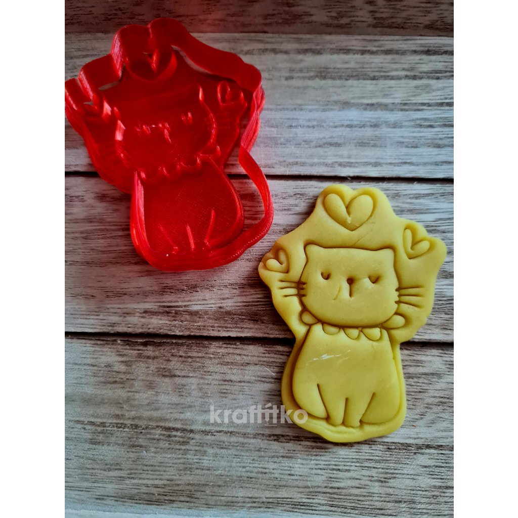 Kočka se srdíčky č.3 - vykrajovátko 2v1