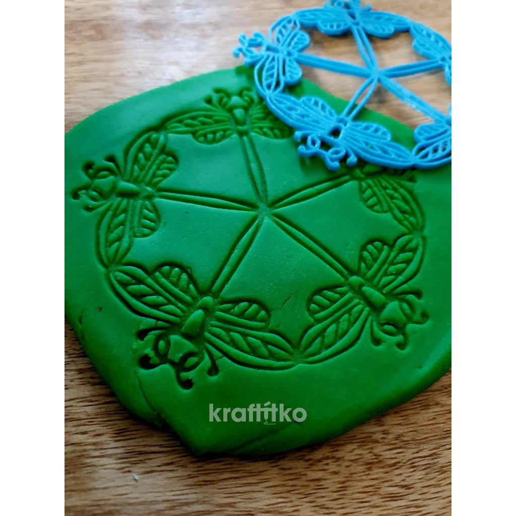 Velikost: od 15 do 21 cm, tloušťka je 2mm je lehce ohebná a dobře se s ní pracuje. Přiložte do modelovací hmoty a přejeďte válečkem.