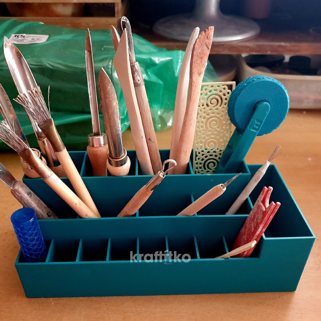 Box - organizér na pomůcky do keramiky, pastelky či fixy, nůžky a různá udělátka.