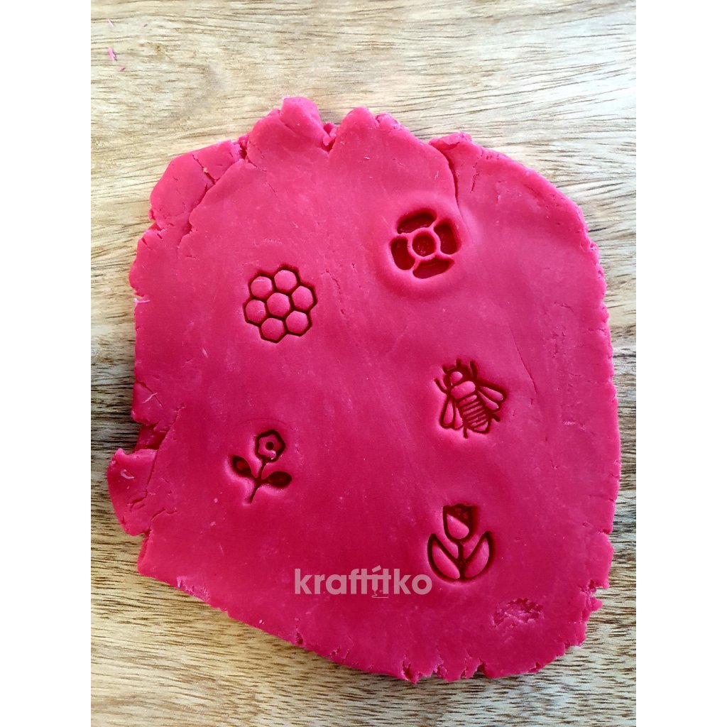 Naše razítka jsou skvělou pomůckou do keramiky a nejrůznějších hmot. Můžete je také namočit do barvy a otisknout třeba na látku či papír (podložte ho kouskem látky, aby se razítko mohlo lépe otisknout).