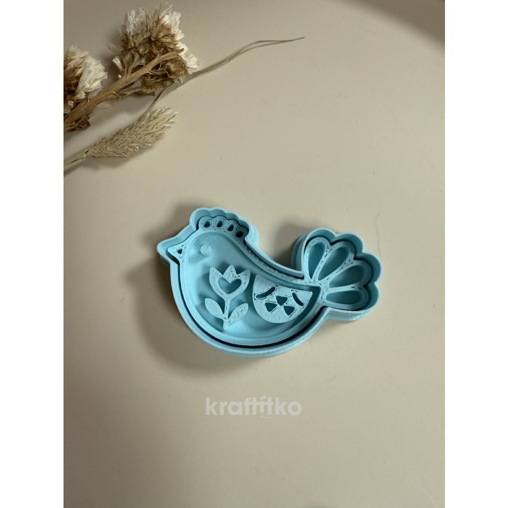 Folklorní ptáček č.4 vykrajovátko 2v1 - vnější obrysové vykrajovátko a vnitřní otisk