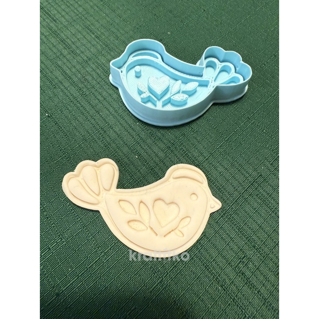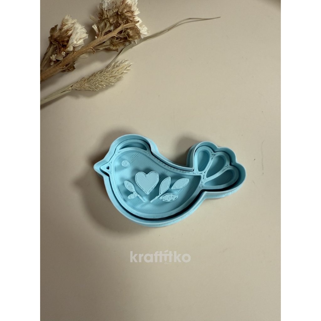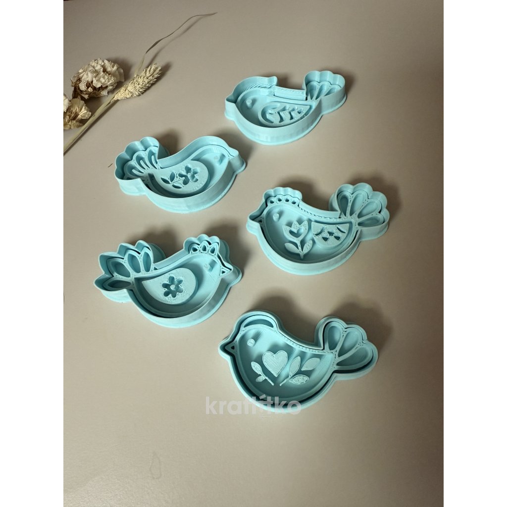 Folklorní ptáček č. 6 vykrajovátko 2v1 - vnější obrysové vykrajovátko a vnitřní otisk