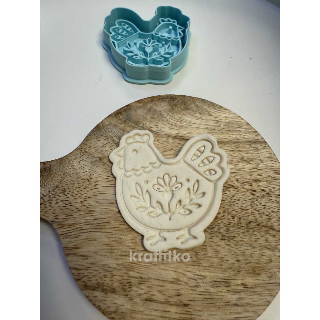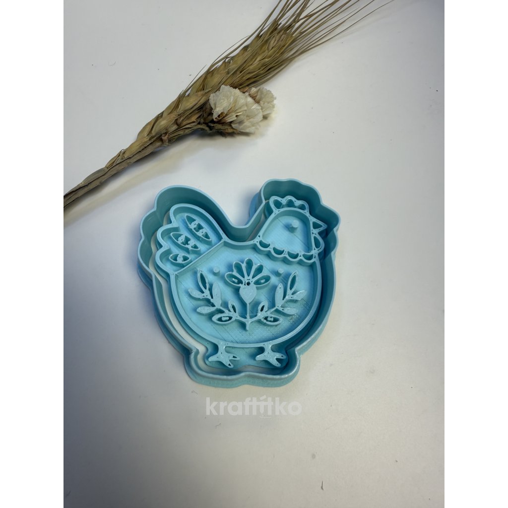 Folklorní slepička vykrajovátko 2v1 - vnější obrysové vykrajovátko a vnitřní otisk
