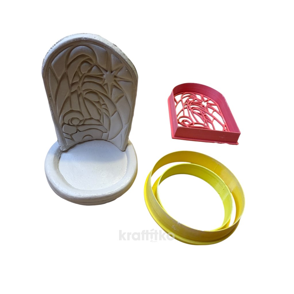Obsahuje: Vykrajovátko vnější obrys, vnitřní otisk (3mm tloušťka) a 2 kolečka pro výrobu tácku na svíčku.