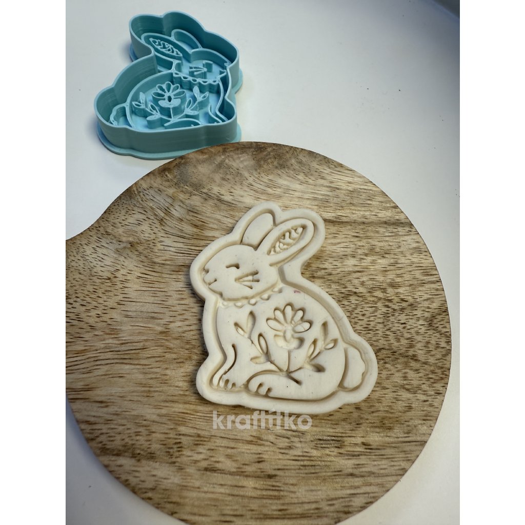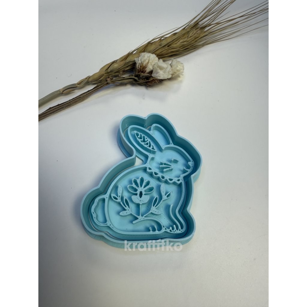 Folklorní zajíček vykrajovátko 2v1 - vnější obrysové vykrajovátko a vnitřní otisk