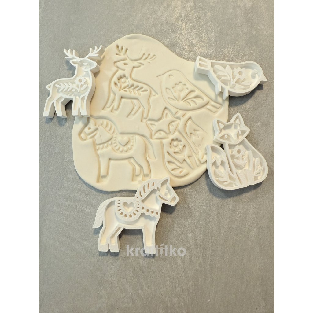 Naše otisky jsou skvělým pomocníkem při práci s keramikou, polymerovou hmotou, plastelínou, moduritem a dalšími modelovacími materiály. Jsou ale také ideální pro tvoření na papír nebo textil – stačí je namočit do barvy nebo přetřít barvou a můžete otiskovat originální motivy na látky či papír.