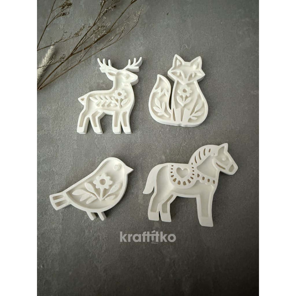 Folklorní zvířátka 4 ks - sada - jelen, ptáček, liška, koník